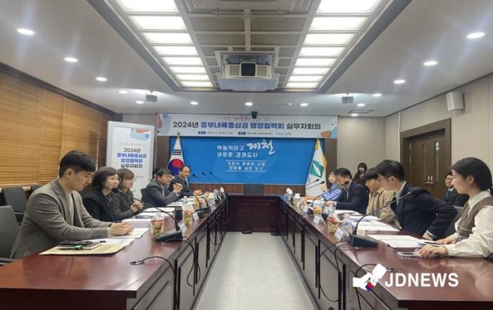 중부내륙중심권 행정협력회 실무자회의제천시는 지난 28일 의림지실에서 제천·단양·영월·평창·영주·봉화 6개 시·군 담당자가 참석한 가운데 중부내륙중심권행정협력회 실무회의를 개최했다.중부내륙중심권행정협력회는 3개도(충청북도, 강원특별자치도, 경상북도) 6개 시ㆍ군(제천,