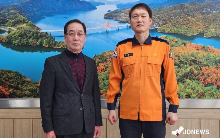 좌측 유인무 가드제천소방서(서장 류지노)는 오는 12월까지 중앙시장 내 ‘전통시장 Safe Guide’ 배치로 시장 상인들과 함께 지속적인 안전 확보에 만전을 기하겠다고 밝혔다. 전통시장 Safe Guide는 인사혁신처 ‘퇴직공무원 사회공헌사업’ 공모에 선정되면서 전국