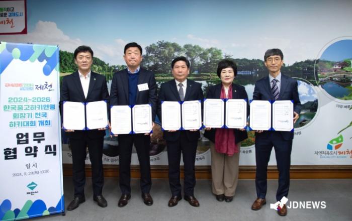 한국중고하키연맹 회장기 전국 하키대회 장기개최 협약식 사진제천시와 한국중고하키연맹은 매년 정기적으로 개최되는 한국중고하키연맹 회장기 전국 하키대회를 향후 3년(2024년~2026년)간 제천시에서 개최하기로 협약을 맺었다.전국의 수많은 하키선수단이 전지훈련을 위해 제천시