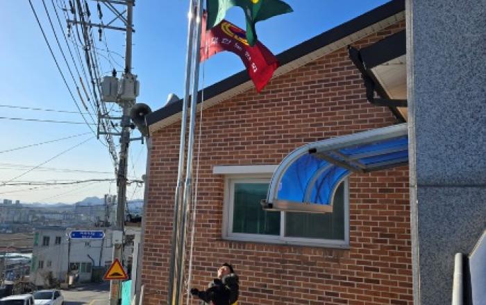 ▲ 태극기와 새마을기 교체 봉사활동 사진지난 3월 1일 오전, 제천시 교동 행정복지센터(교동장 함미경) 직원으로 구성된 공무원 자원봉사 동아리(가람슬기봉사단)는 관내 경로당 21개소에 게양된 태극기와 새마을기 교체 봉사활동을 실시했다.이 행사는 제105주년 3.1절을