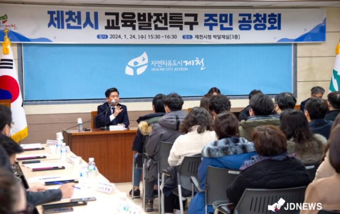 제천시는 시민들으 대상으로 교육발전특구 주민 공천회 를 개최했다.제천시는 교육발전특구 1차 공모 신청 결과 시범지역으로 선정됐다고 29일 밝혔다.이번 교육발전특구 시범지역에 선정됨에 따라, 제천시는 3년간 시범지역 운영을 위해 공모기획서 내용을 토대로 제천형