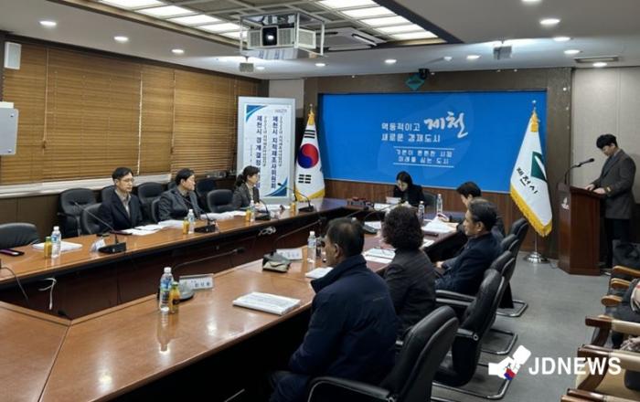 ▲ 경계결정위원회 개최제천시는 6일 시청 의림지실에서 경계결정위원회 위원장(청주지방법원 제천지원 판사) 및 위원 11명이 참석한 가운데 경계결정위원회를 개최했다.이날 위원회에서는 2023년 지적재조사사업 봉양구학지구 등 3개 지구 4,773필지(11,165천㎡)에 대해