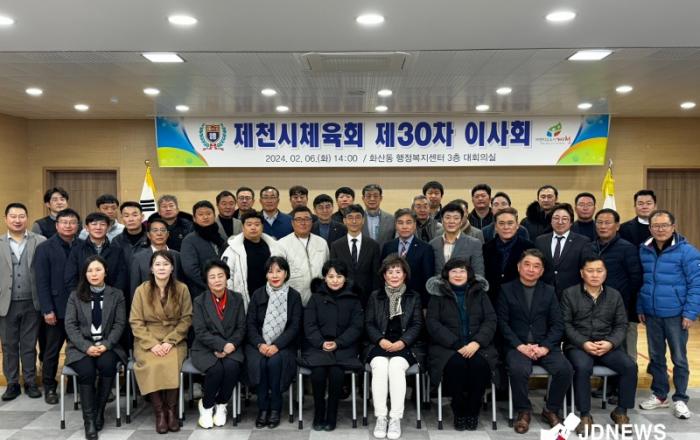 ▲ 제천시 체육회 제30차 이사회 개최제천시체육회(회장 안성국)는 지난 6일 화산동 행정복지센터 대회의실에서 제30차 이사회를 개최했다.이번 이사회는 안성국 회장을 비롯한 42명의 임원이 참석한 가운데 보고사항, 심의안건, 기타토의 순으로 진행했다.이날 회의에서는 ▲2