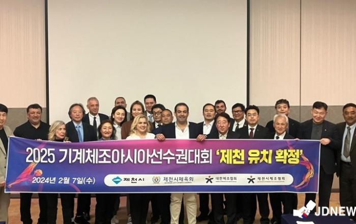 ▲ 2025년 기계체조아시아선수권대회 유치에 성공제천시가 아시아 기계체조인들의 최고 축제인 2025년 기계체조아시아선수권대회 유치에 성공했다.7일 일본 도쿄프린스호텔에서 진행된 2024 아시아체조연맹(AGU) 집행위원회에서 2025년 개최지 선정 심의결과 대한민국 제천