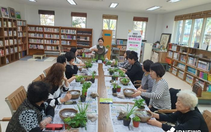 ▲ 주민들이 프로그램에 참여하고있는 모습제천강저리슈빌아파트 내 ‘리슈빌 작은도서관’이 도서관으로서의 기능뿐만 아니라 주민 문화공간으로서의 역할을 톡톡히 해내고 있어 주목을 끈다.특히, 올해 LH가 주최하고 (사)한국작은도서관협회가 주관하는 ‘LH 작은도서관 활
