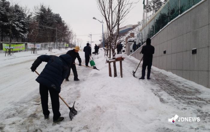 ▲ 눈치우기제천시(김창규 시장)는 겨울철을 맞아 신속한 제설작업 및 내집앞 눈치우기에 시민(단체)의 참여를 높이기 위한 “동절기 제설 상황관리 및 주민참여 계획”을 수립하였다. ‘제천시 건축물 관리자의 제설 및 제빙 책임에 관한 조례’에 따라 건축물 관리자에게 내 집(