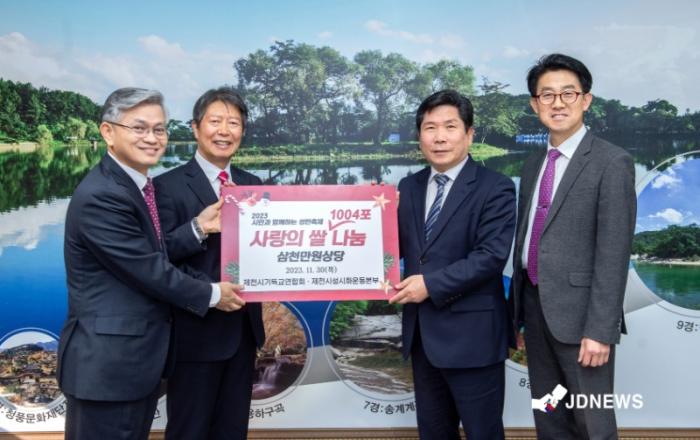 ▲ 사랑의 쌀 나눔 기탁식충북 제천시 기독교연합회(회장 최영준 목사)가 주최하고 제천시 성시화운동본부(본부장 박선순 목사) 주관 ‘2023년 제천시민과 함께 하는 성탄문화제’가 12월 2일 시민회관 광장에서 시작된다.제천시가 후원하는 올해 성탄문화제는 12월 2일 오후