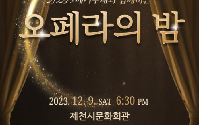 ▲ 베라루체 오페라단 포스터오는 12월 9일 토요일 제천시문화회관에서 ‘2023 베라루체와 함께하는 오페라의 밤 공연’이 개최된다.이 특별한 공연은 제천 지역 출신의 해외 유학 및 활동가로 활약하는 성악가들이 모여 창단한 "베라루체 오페라단"의 출범을 기념하는 자리로,