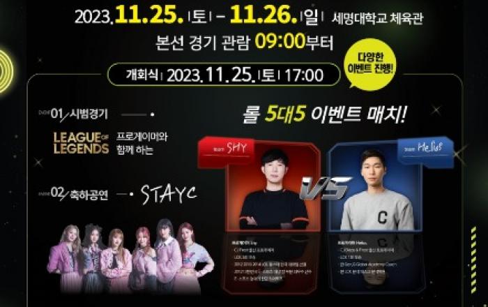 ▲ e스포츠 대회 포스터제천시가 주최하고 세명대가 주관하는 2023 제천시장배 전국 e-스포츠 대회가 오는 11월 25일 세명대학교 체육관에서 개최된다.제천에서 처음 열리는 이번 대회는 배틀리카(온라인 이스포츠 리그 플랫폼) 접수결과 320팀 1,156명이 신청하며 조