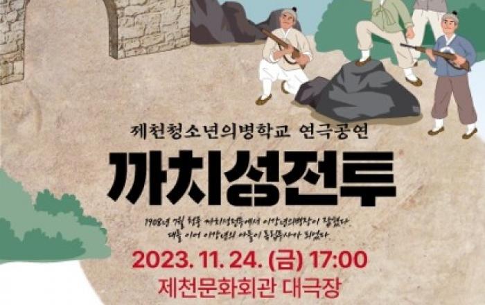 ▲ 제천청소년의병학교, '까치성전투·의병은 영원하다' 공연 포스터충북 제천지역에서 왕성한 연극활동을 하고 있는 좋아서하는극단(대표 권정현)이 지역의 초·중생과 함께 제천의병의 역사를 조명하는 연극 '까치성전투·의병은 영원하다'를 오는 24일 제천문화회관에서 공연을 펼친