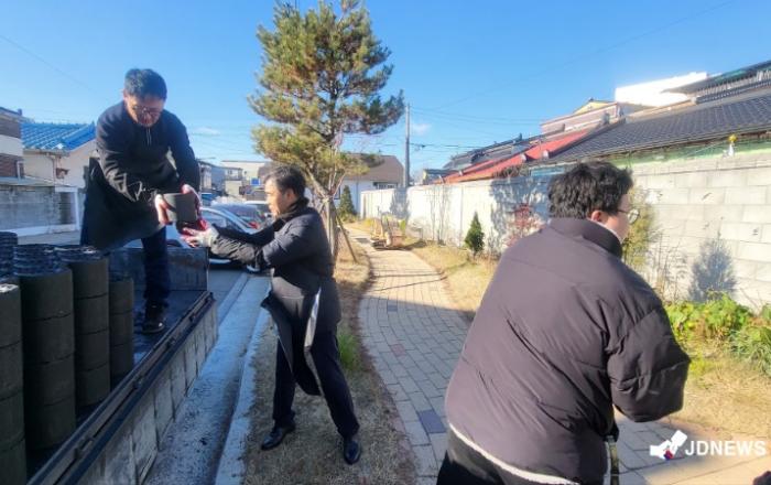 ▲ 제천시학원연합회와 제천시교육청 관계자들이 화산동 취약계층에게 연탄나눔 봉사활동을 펼치고 있다.제천시학원연합회와 제천시교육청 이 화산동 취약계층에게 연탄나눔 봉사활동을 펼쳤다.충북 제천시학원연합회(회장 조주환)는 24일 제천교육지원청과 함께 화산동 취약계층 8가구를