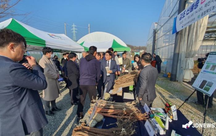 ▲ 감초 심포지엄제천시와 국립원예특작과학원, 충청북도농업기술원, 한국농업기술진흥원은 신품종 감초 산업화 추진을 위한 감초 신품종 현장평가회 및 산업화 심포지엄이 15일 제천시농업기술센터와 신품종 감초 재배포장에서 개최됐다.본 행사는 국내 연구진이 육성한 국산 품종(원감