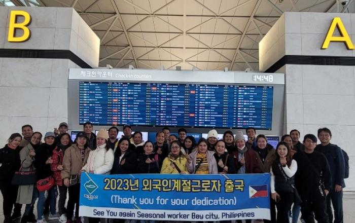 ▲ 외국인 계절근로자 출국사진지난 16일 외국인 계절근로자의 최종 출국을 끝으로 제천시가 추진한 계절근로자 사업을 마무리했다.올 한해 제천시를 찾은 외국인 계절근로자는 총 84명으로, 2회(4월, 9월) 걸쳐 입국해 오이, 사과, 약초 등 다양한 작물의 재배 및 수확