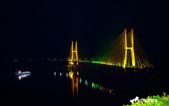 ▲ 청풍대교 점등제천시는 지난 1일 청풍호반 야간경관조명 조성을 완료하고 시민들에게 선보였다.청풍대교는 북부권역과 남부권역을 연계하는 주요 시설물로 야간경관조명 조성사업을 통해 야간에도 대교를 밝게 비출 수 있는 LED투광등(200~600W)을 설치했다.도비 포함 총