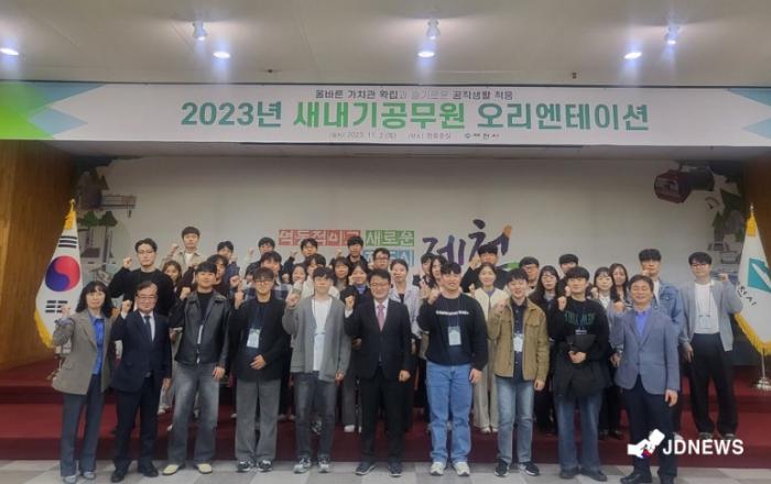 ▲ 새내기 공무원 오리엔테이션제천시는 지난 2일 시청 회의실에서 2023년 신규 임용된 공무원 36명을 대상으로 공직자로서의 기본 실무교육과 시 산하기관의 현장을 견학하는 오리엔테이션을 진행하였다.이번 오리엔테이션은 공직자로서 올바른 가치관 정립하고, 앞으로