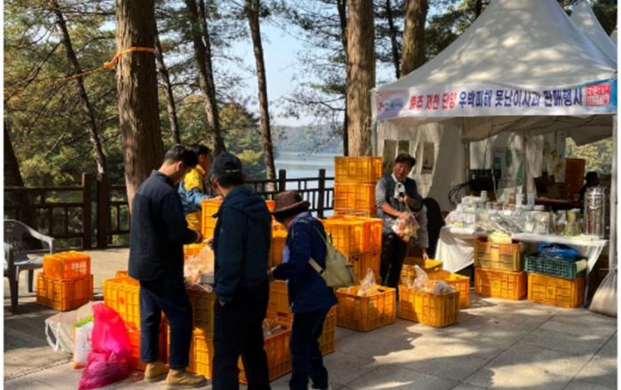 ▲ 우박 판매 농가지원 (못난이사과 판매)제천시는 지난 10월 우박으로 인한 피해농가에 공무원 · 자원봉사 · 도시농부 등 266명 투입해 응급 지원을 실시했다.이번 우박은 제천시 전역을 강타하여 사과 112ha, 119농가에 피해가 발생하는 등 총 340농가 약 14