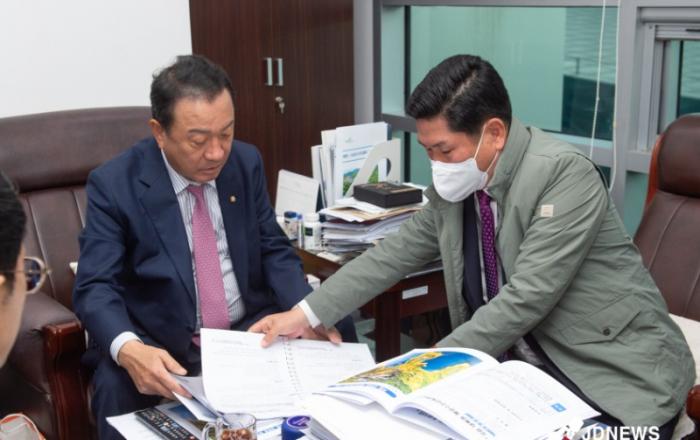 ▲ 엄태영 국회의원 면담김창규 제천시장은 지난 9일 본격적인 2024년도 정부예산의 국회심의에 앞서 엄태영 지역 국회의원을 면담하고 제천시 주요 사업에 대한 국회 증액을 협조 요청했다.이날 김창규 시장은 엄태영 국회의원을 만나 정부예산안에 미 반영된 ▲2025 제천국제