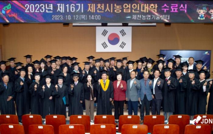 ▲ 16기 농업인대학교 수료식기 사진 제천은 전국의 유일한 농경문화유산인 의림저수지가 보존된 자연치유도시로 농경문화예술제, 삼한의 초록길.의림지 친환경무농약쌀 등 농경문화와 치유가 어우러진 치유농업도시로 발돋음 하고 있다.제천농기센터에서는 2021년부터 3년간 치유농