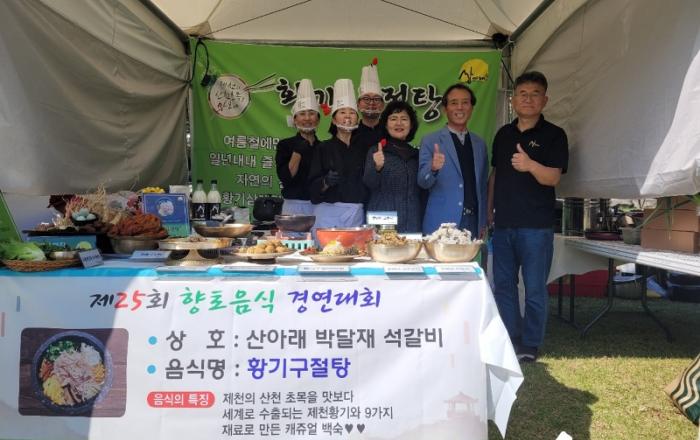 ▲ 음식경연대회 사진제천시 보건소는 증평 인삼골 축제와 함께 열린 제25회 충청북도 음식경연대회에서 ‘산아래 박달재 석갈비(대표 박태현)’ 제천시 대표로 왕중왕 부문에 참가하여 특별상을 수상했다고 지난 16일 밝혔다.음식경연대회는 지역의 특색 있는 향토음식을 적극 발굴