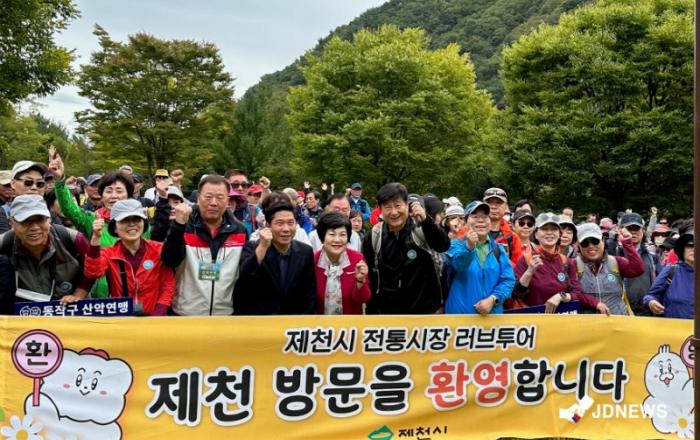 ▲러브투어 3만 명 돌파제천시가 지역 전통시장과 관광 활성화 프로그램으로 추진하고 있는 ‘전통시장 러브투어’ 방문객이 3만 명을 훌쩍 넘어섰다.이에 시는 지난 8일 김창규 시장과 이정임 의장 등이 참석한 가운데 한방생태숲 잔디광장에서 전통시장 러브투어 3만 번째 방문객