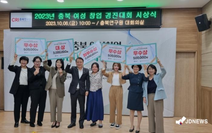 ▲ 여성인 경진대회 수상자제천여성새일센터는 지난 6일 충청북도와 충북여성새로일하기지원본부가 주최한 『2023 충북 여성창업 경진대회』에서 제천 김현경씨가 우수상을 수상했다고 밝혔다.‘젤리스틱 형태의 한방식혜 개발’ 사업 아이템으로 우수상을 수상한 김현경씨는 제천 스타점