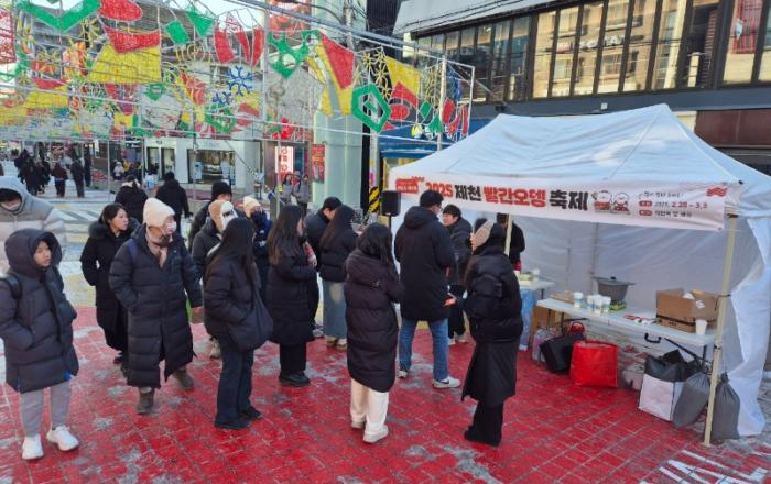제천빨간오뎅 찾아가는 미식회제천시가 지난 7일 홍대근처에서 2025 제천빨간오뎅축제를 앞두고 사전 홍보 행사를 열었다. 서울 마포구 홍대입구역 인근 광장에서 진행된 ‘제천빨간오뎅 찾아가는 미식회’는 서울 시민들에게 제천의 대표 음식인 빨간오뎅을 알리고, 제천의