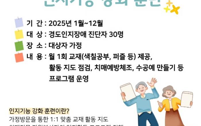 세명대학교 작업치료학과가 제천시보건소의 ‘치매고위험군 인지기능 강화 훈련’ 프로그램 운영을 지원한다. 이번 보건소의 ‘치매고위험군 인지기능 강화 훈련’ 사업은 치매 전 단계로 알려진 경도인지장애 진단자 30명을 대상으로 체계적인 인지훈련을 지원하는 것을 목표로 하며