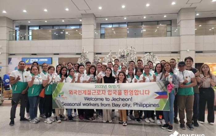 ▲ 계절근로자 입국제천시는 앞서 상반기 외국인 계절근로자 입국(54명)에 이어 하반기 계절근로자 30명이 22일 입국했다고 밝혔다.이번에 필리핀 베이시에서 입국한 외국인 근로자는 작업 투입 전 범죄예방‧이탈방지 사전교육을 받고 14농가로 배치되어 본격적인 수확철 농작업