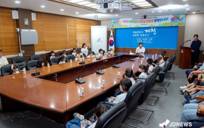 ▲ 두드림 시장실제천시는 관내 어린이를 대상으로 ‘두드림(DO DREAM) 시장실’을 운영한다고 밝혔다. 이번 ‘두드림(DO DREAM) 시장실’ 운영은 지난 달 20일부터 31일까지 관내 어린이집을 대상으로 신청접수를 받았으며, 8월부터 월 1회 운영된다.하얀어린이집