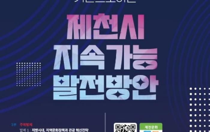 ▲ 제천문화재단 정책포럼제천문화재단(이사장 김상수)이 오는 25일 제천영상미디어센터 3층 상영관에서‘2023년 제1차 지역문화 정책포럼’을 개최한다.이날 포럼은‘지역문화와 관광을 기반으로하는 제천시 지속가능 발전방안’이라는 주제로 지역문화와 관광의 밀접한 관계성에 대하
