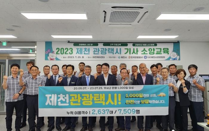 ▲ 관광택시 무사고지난 2020년 5월부터 시작한 관광택시 사업이 무사고 운행 1,000일을 맞아 25일 오전 제천어번케어센터에서 관광택시 종사자 등 관계자 30여 명이 참석한 가운데 유공자 공로패 수여 등 기념행사가 열렸다.제천 관광택시는 2020년 5월 첫 관광객이