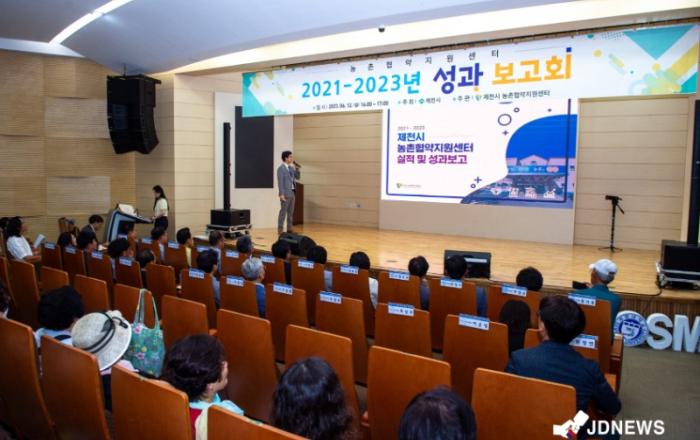 ▲ 제천시농촌협약센터 성과보고회 제천시농촌협약지원센터(센터장 김계수)는 지난 12일 세명대학교 학술관 제1컨퍼런스홀에서 ‘2023년 제천시농촌협약지원센터 성과보고회’를 개최했다. 이 날 보고회는 김창규 제천시장, 이정임 제천시의회 의장, 김계수 제