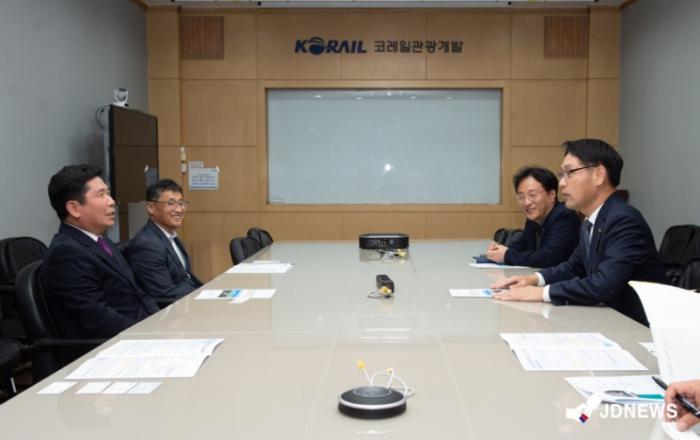 ▲ 김창규 제천시장“코레일 계열 공공기관 유치 총력” 김창규 제천시장이 15일 서울 용산구 코레일관광개발(대표이사 권신일) 본사에 방문해 권신일 대표와 만남을 가졌다.시작부터 김 시장은 권 대표이사에게 코레일 관광개발 이전 시 맞춤형 부지부터 이주직원 복지혜택