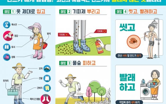 ▲ 진드기 매개 감염병 예방 홍보물올해 도내 첫 중증열성혈소판감소증후군(SFTS) 환자가 제천에서 발생한 가운데, 제천시가 진드기 매개 감염병 주의를 기울일 것을 당부했다.중증열성 혈소판 감소 증후군(이하 SFTS)은 바이러스에 감염된 참진드기가 우연히 사람을 물 때