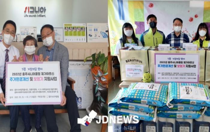 ▲ 충주시니어클럽 취약계층 지원사업 전개충주시니어클럽(관장 김익회)은 9988행복지키미 사업단 참여자 및 수요자를 대상으로 주거환경개선 및 보청기 지원사업을 추진했다고 27일 밝혔다.‘주거환경개선 및 보청기 지원’은 저소득 노인 가정을 선정해 도배·장판 교체 등 열악한