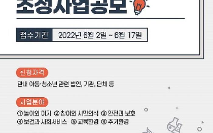 ▲ 아동친화도시 조성사업 공모 포스터충주시는 아동의 권리를 보장하고, 아동이 행복한 도시 구현을 위해‘2022년 아동친화도시 조성 공모사업’을 추진한다고 30일 밝혔다.시는 공모사업을 통해 유니세프 아동친화도시 6개 분야인 △놀이와 여가 △참여와 시민의식 △안전과 보호