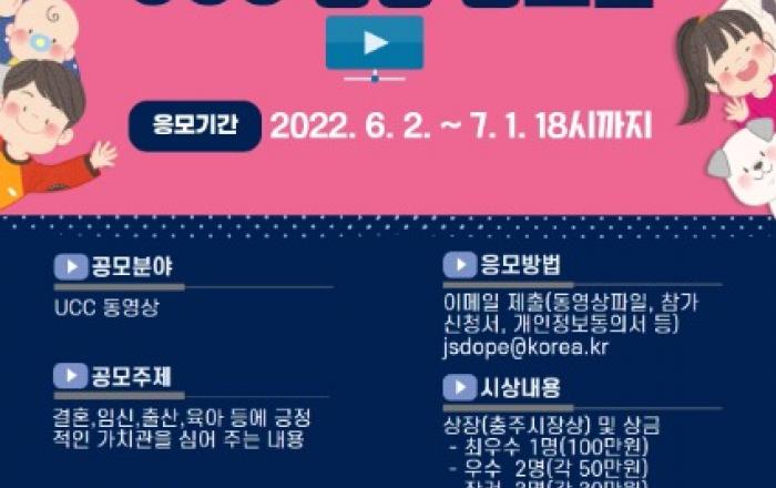 ▲ 인구정책UCC영상공모전 포스터충주시는 저출산, 인구 감소 등 인구문제의 심각성에 대한 공감대 형성과 결혼‧임신‧출산‧육아에 대한 인식 개선을 위해 ‘인구정책 UCC 영상 및 그리기 공모전’을 개최한다고 7일 밝혔다.UCC(사용자가 직접 제작한 저작물) 영