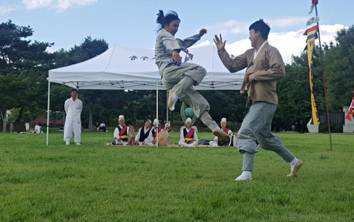 ▲ 택견무형문화유산의 대중화와 전승 활성화를 위해 문화재청과 충주시가 지원하는 국가무형문화재 택견 공개 행사가 3년 만에 대면으로 개최된다.오는 28일 오후 3시 충주시 택견원에서 펼쳐지는 이번 택견 공개행사에서는 국가무형문화재 제76호 택견보존회와 인간문화재 정경화