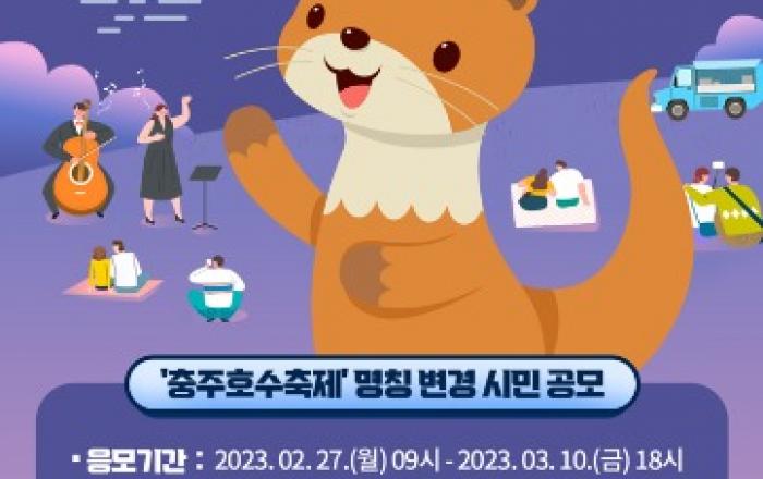 ▲ 충주대표 관광축제의 매력적 이름을 지어주세요충주시가 충주의 대표 관광축제에 걸맞은 새로운 이름을 찾고자 시민을 대상으로 공모를 진행한다고 밝혔다.공모는 충주의 대표 관광축제인 충주호수축제가 ‘호수’라는 주제에서 벗어나 충주를 대표할 새로운 이름을 찾아 관광 축제의