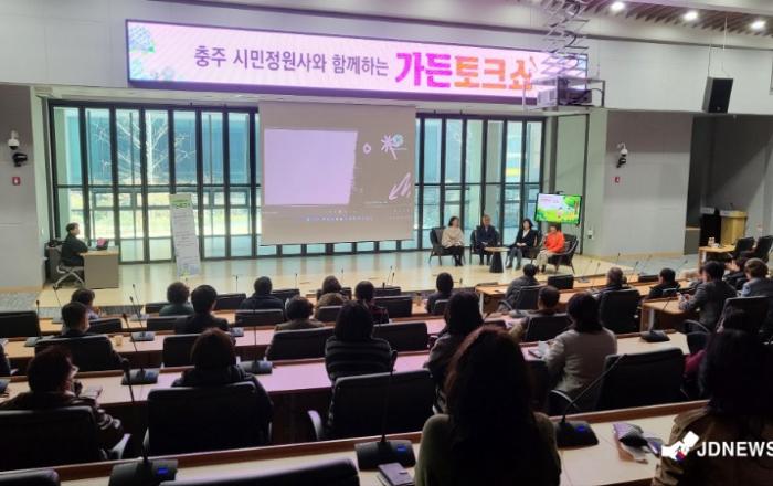 ▲ 시민정원사와 함께하는 가든토크쇼충주시는 27일 유네스코 국제무예센터에서 ‘충주시민정원사와 함께하는 가든토크쇼’를 진행했다.이날 토크쇼는 ‘정원’의 의미가 시민들에게 더 가까이 다가가는 기회를 만들고 나아가 ‘자연을 가꾸며 행복을 누리는 정원도시’의 공감대