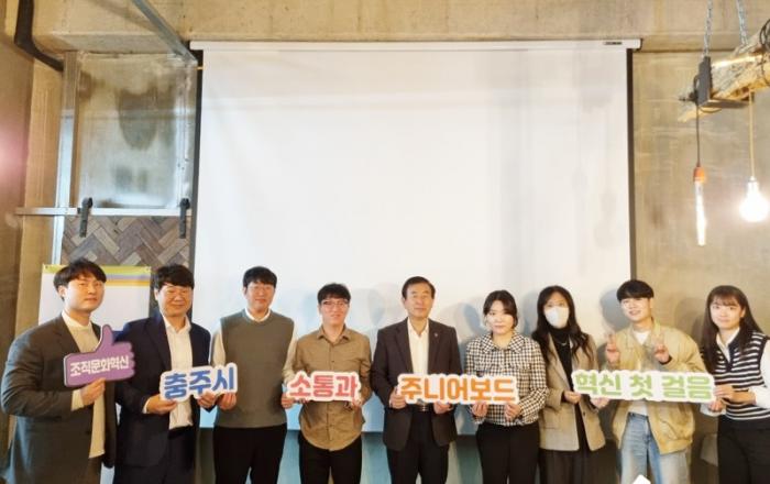▲ 시정혁신 주니어보드충주시는 11일 청년 직원들로 구성된 ‘시정혁신 주니어보드 발대식’을 개최하며 조직문화 혁신을 위한 본격적인 활동을 개시했다.주니어보드는 젊은 실무자로 구성된 청년 실무진 회의로 건의 사항이나 각종 아이디어 등을 제안·토의하며 활동하는 모임이다.주