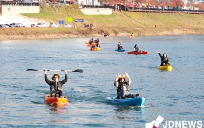 ▲ 패들보딩 체험한느 관광객들수상관광 시대 원년을 선포한 단양에서 한여름 무더위를 식혀줄 썸머 페스티벌이 한차례 연기 끝에 드디어 개막한다. 군에 따르면 이번 축제는 27∼28일 2일간 단양읍 상진리 계류장 인근에서 유례없던 수상 축제가 다채로운 일정으로 펼쳐질 예정이