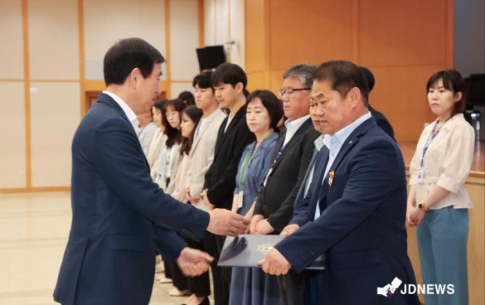 유승훈 안전총괄과장, 국가재난관리유공 대통령상 수상 모습충주시는 유승훈 안전총괄과장이 적극적인 재난예방․대응․복구에 따른 재난피해 극복에 기여한 공로를 인정받아 국가재난관리 유공 대통령 표창을 수상했다고 3일 밝혔다.충주시는 지난해 기록적인 폭우와 괴산댐 월류로 큰 피