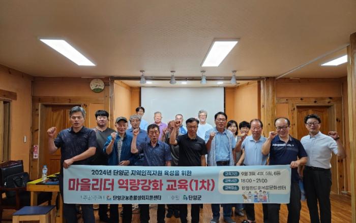 9월 3일-9월 6일 한드미마을에서 1차 마을리더역량강화교육 을 실시하였다.충북 단양군은 2024년 9월 3일부터 6일까지 하일한드미복합문화센터에서 '마을리더 역량강화 교육'을 진행했다. 이번 교육은 단양군농촌활성화지원센터 주관, 단양군 후원으로 매일 오후 6시부터 9