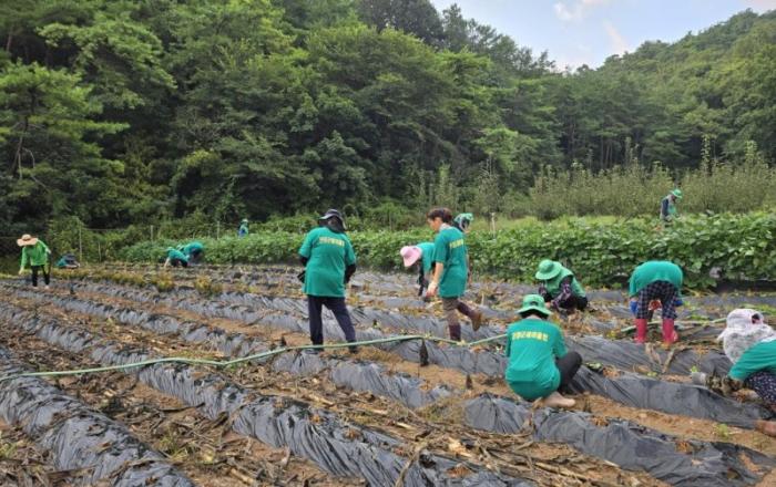 적성면 새마을남녀지도자협의회는 각기리에 사랑의 김장김치 나눔 행사에 사용하기 위해 배추와 쪽파 등을 심고 있다.단양군 적성면 새마을남녀지도자협의회(회장 김덕식, 오경미)는 지난 27일 배추 심기 작업을 진행했다.단양군 적성면 새마을 남녀지도자협의원 30여명이 사랑의
