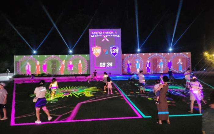 휴가철 방문객들이 금곡분교 운동장에 설치된 미디어파사드를 즐기고 있다.‘(舊)금곡분교 관광자원화사업’ 민간사업자 공모를 거쳐 지난해 8월 오픈한 ‘팝스월드’가 개장 1주년을 맞았다.2024년 5월 그랜드 오픈을 한 팝스월드는 여름 성수기 동안 지난해 대비 방문객 수