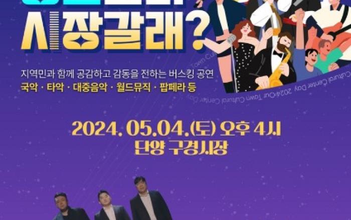 우리동네 문화장날 홍보포스터단양 구경시장에 눈과 귀가 즐거운 볼거리가 풍성해진다.단양에서의 첫 공연은 오는 4일 오후 4시 구경시장 문화광장에서 성악 전문 연주단체인 ‘보체비바’가 공감과 감동을 전하는 버스킹을 선보일 예정이다.‘보체비바’는 이탈리아어로 ‘생생한 목소