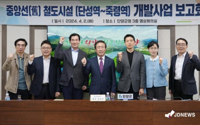보고회 사진풍광이 아름다운 대한민국 내륙관광 1번지 충북 단양군이 철도 관광지로 급부상한다.군에 따르면 ‘중앙선 구철도시설(단성역⁓죽령역) 개발사업’의 성공적인 추진으로 중앙선 페철도 위를 시원하게 내달리는 레일바이크와 풍경 열차를 볼 수 있을 전망이다.군은