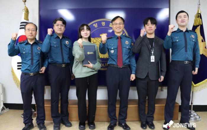 업무유공 표창장 수여식 (좌측부터 경감 최용운, 경위 송선민, 순경 김소영, 단양경찰서장 박희규, 순경 김학찬, 경사 최동길)단양경찰서(서장 박희규)에서는 5일 오전 경찰서 소회의실에서 차량절도범 검거 유공자 등 기능별 업무유공자에 대한 표
