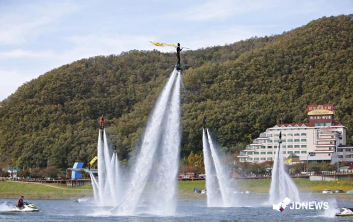 지난해 수상레저 대회 사진 충북 단양군이 ‘대한민국 수상레저의 메카’로 급부상하고 있다.군은 올해 5월 모토서프 아시아 챔피언십을 시작으로 7월 단양 레이크파크 수상 페스티벌, 9월 단양호 피코&호비 챔피언십 요트대회, 10월 단양 하이드로